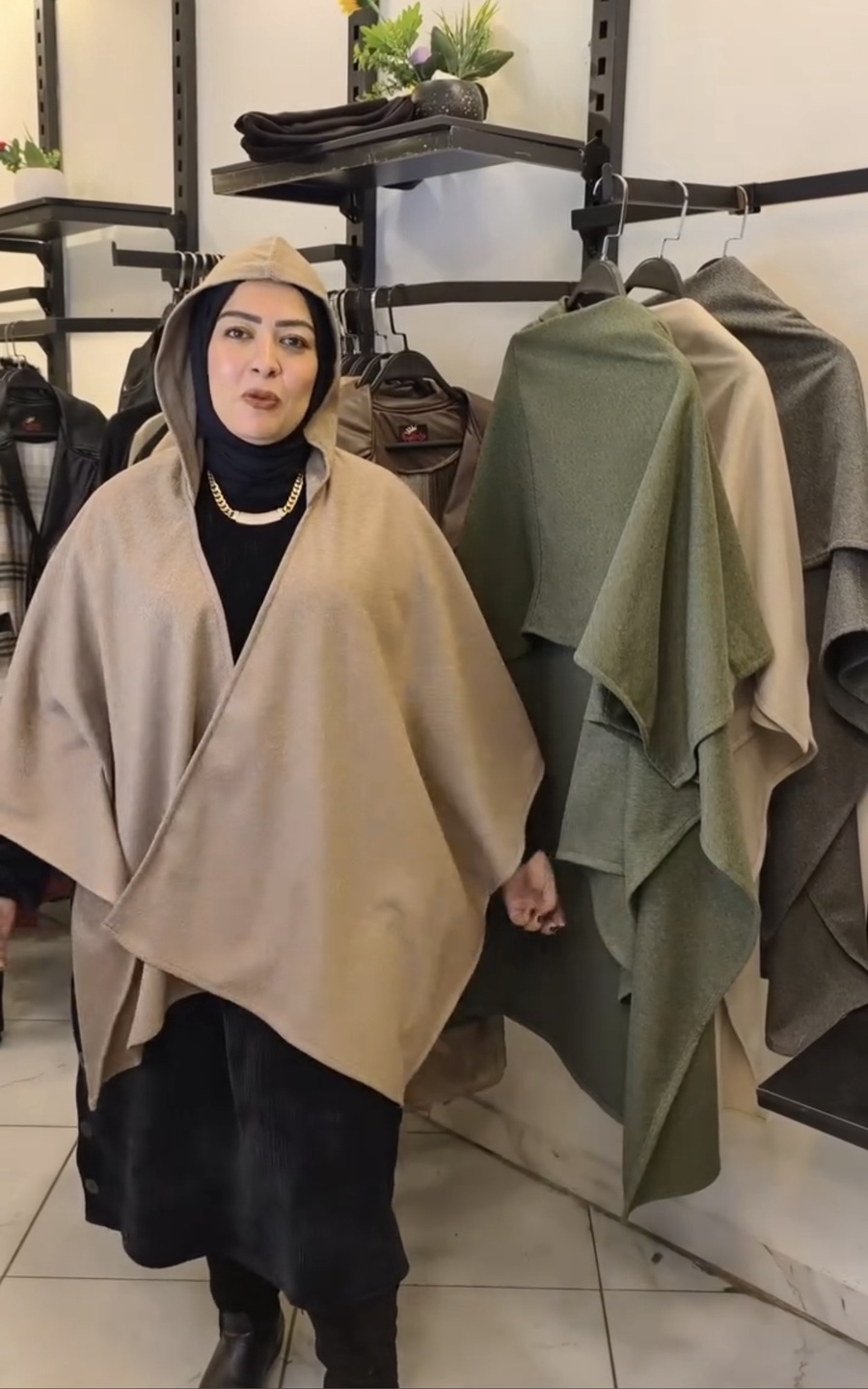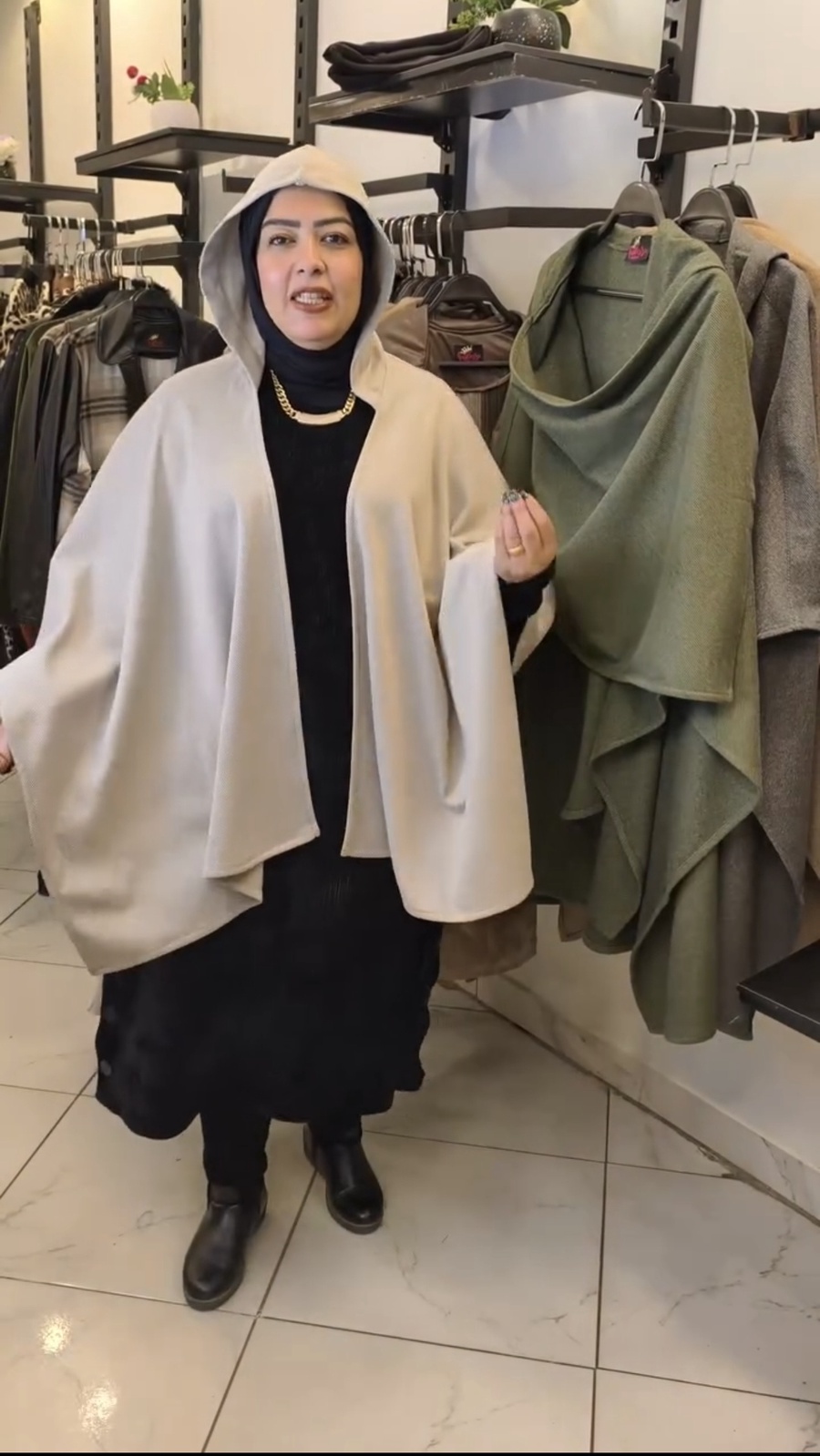 شال جوخ تويد بكابيشو زيتى جراى كافيه بيج